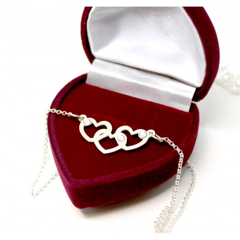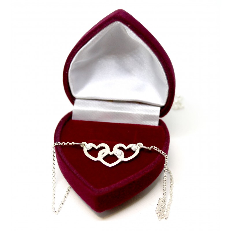 925 prooviga hõbekett, kolmik südamed valgete Swarovski kristallidega. Soovi korral saab kristallide värvi valida ja soovitud värvidest anda teada tellimuse lõpus kommentaari kastis!