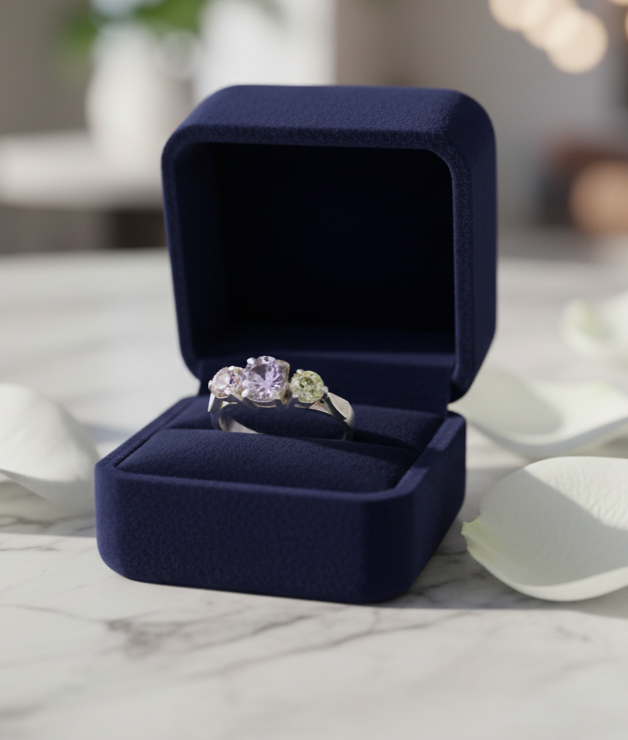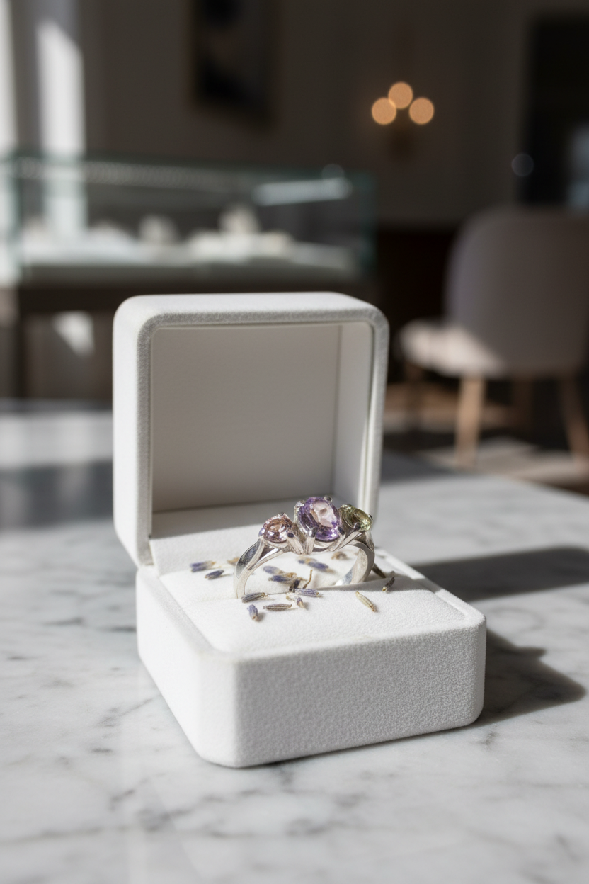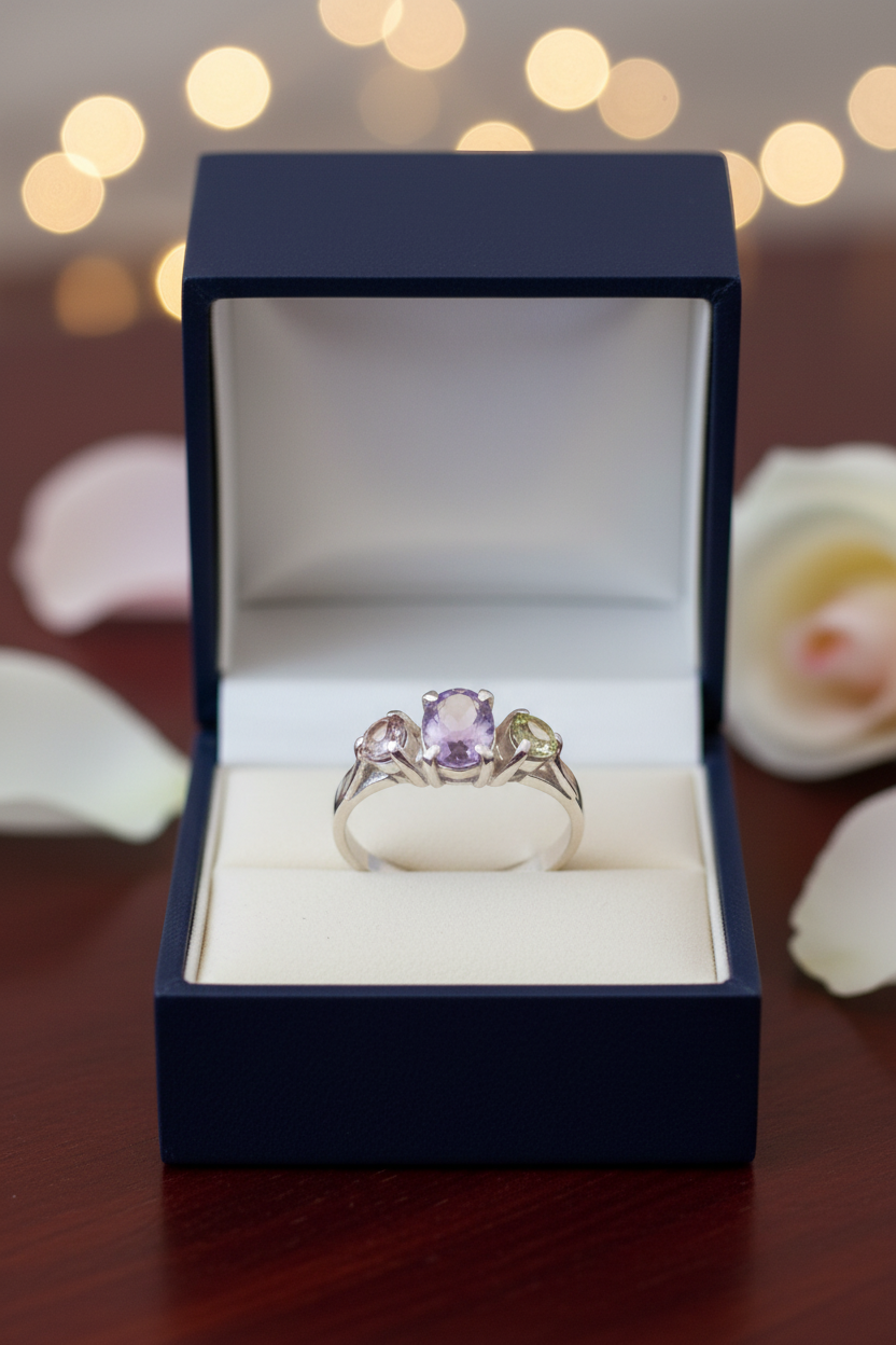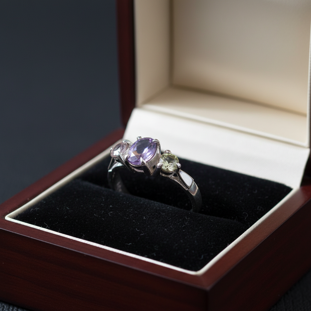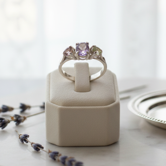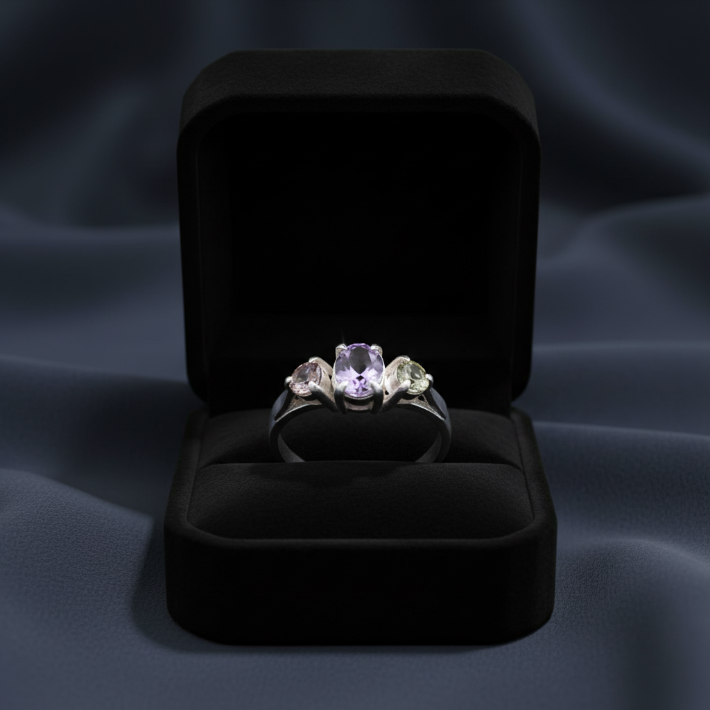 Hõbesõrmus – ametüsti ja tsitriinidega
